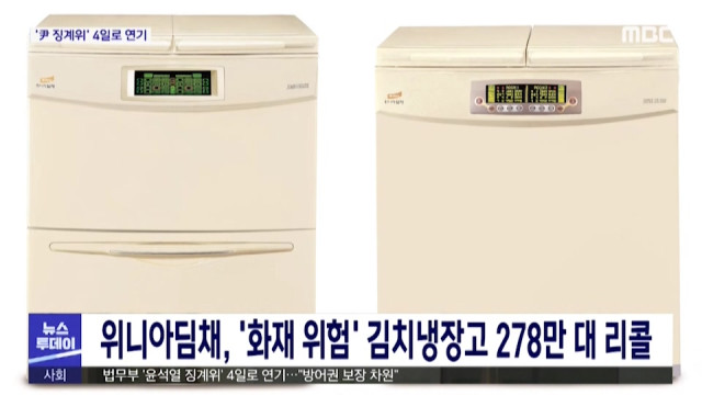 ● 위니아는 지난 2020년 12월 2005년 9월 이전에 제조된 구형 딤채 김치냉장고에 대한 리콜을 결정했는다. 구형 딤채 모델에서 잇달아 화재가 발생했기 때문이다.