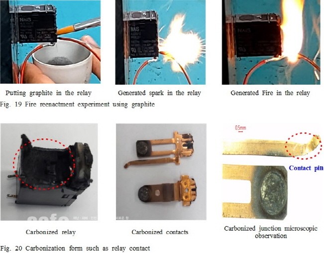 ● 하부를 향해 설치된 릴레이는 작동 시 발열로 인해 접점에 있는 절연물이 열화되고 이 과정이 반복되면서 단락이 일어나 발화로 이어진 것이다.