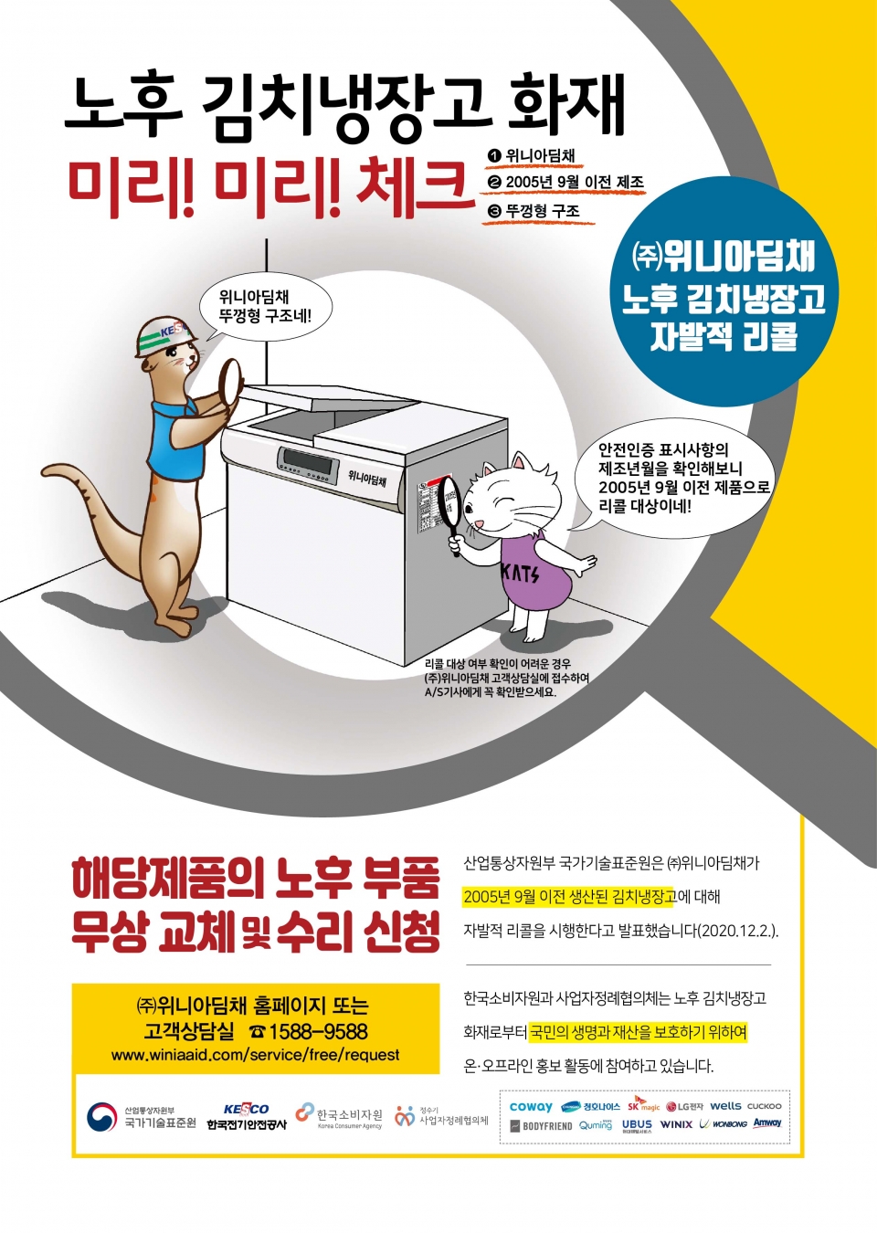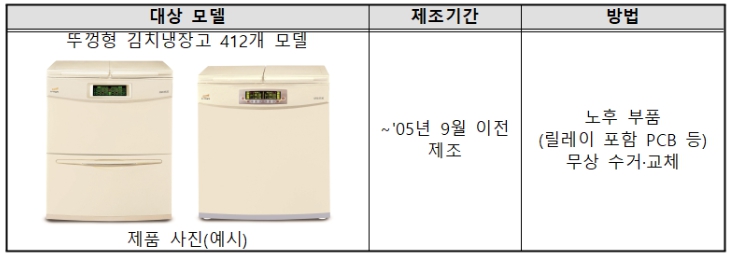 ● 2005년 9월 이전에 만들어진 위니아 딤채 김치냉장고로 3년째 리콜 조치를 하고 사용 중단까지 요구하고 있다.